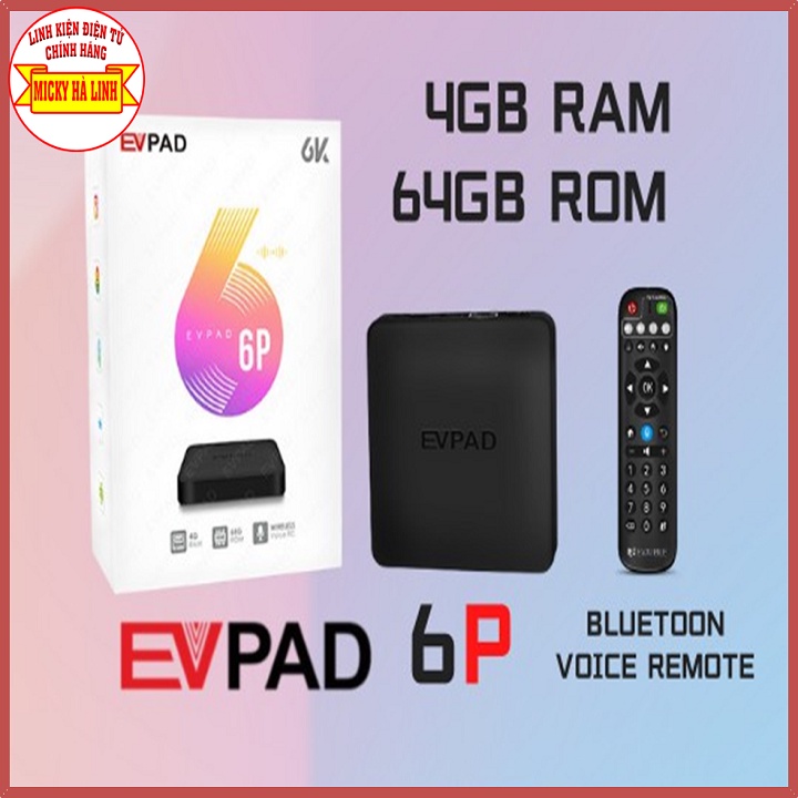 Tivi box EVPAD 6P 4G RAM+64G ROM được trang bị hệ điều hành Android 10.0, dễ sử dụng và hỗ trợ tìm kiếm bằng giọng nói- Có Remote hỗ trợ Voice - Độ phân giải 6K - Hơn 1000 kênh truyền hình hàng đầu các nước - Miễn phí thuê baoTHÔNG SỐ NỔI BẬT