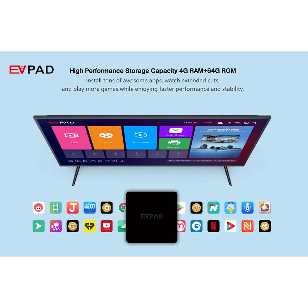 Thiết Bị Điện Gia Dụng > Tivi & Phụ kiện > Tivi box & Đầu thu kĩ thuật số || Tivi box EVPAD 6P 4G RAM+64G ROM được trang bị hệ điều hành Android 10.0, dễ sử dụng và hỗ trợ tìm kiếm bằng giọng nóiCòn hàng