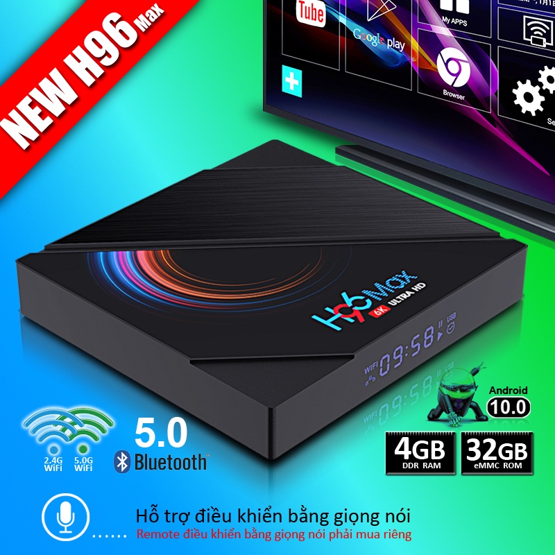 Tivi Box Ram 2/4GB Rom 16/32GB hệ điều hành Android 10.0 cấu hình khủng tốc độ xử lý nhanh H96MAX android tv box