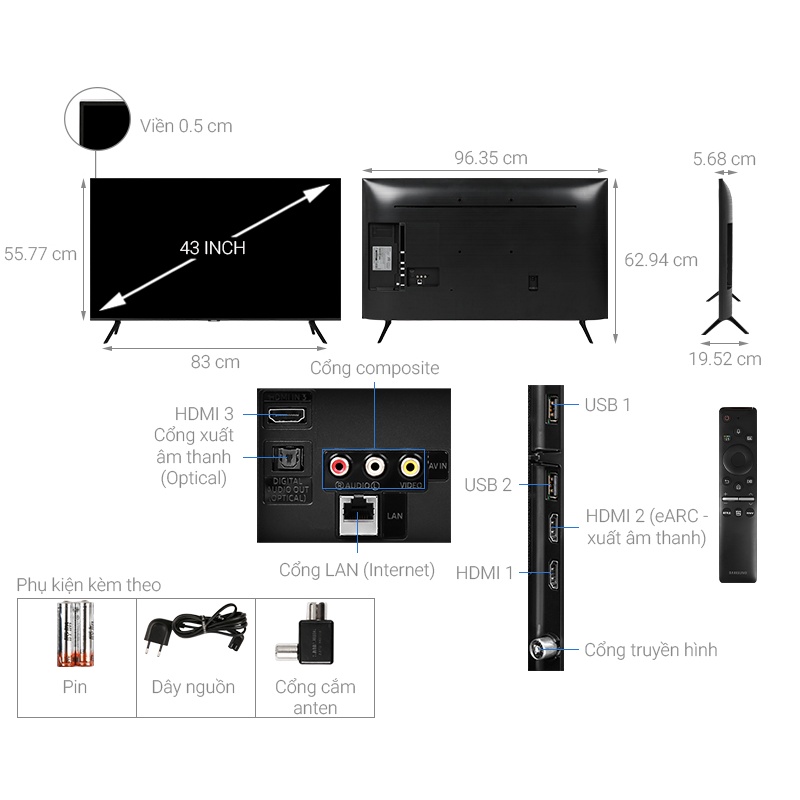 THÔNG SỐ KỸ THUẬT Smart Tivi QLED 4K Samsung 43 Inch QA43Q60AAKXXVHình Ảnh
