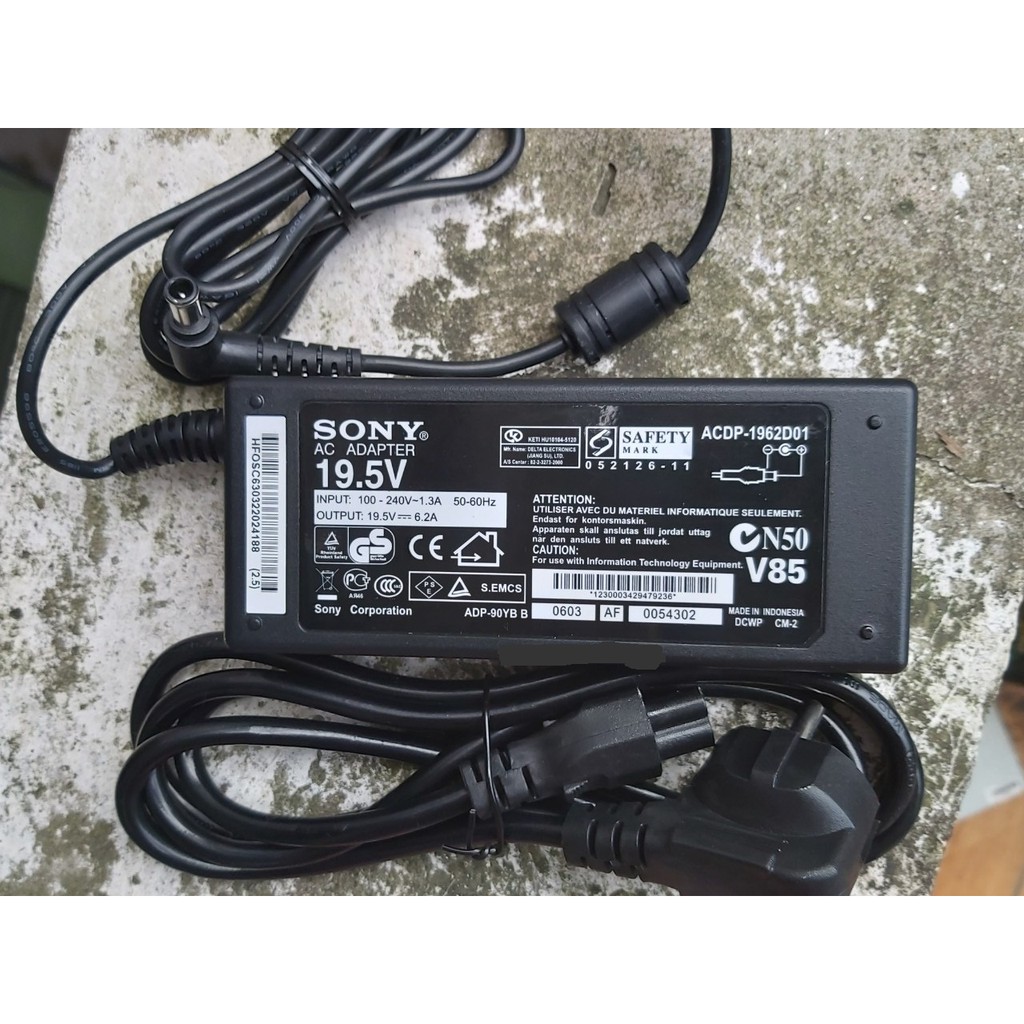 Thông số kỹ thuật trên adapter- nguồn tivi sony 19.5v - Điện áp đầu vào: 100-240V cường độ dòng 1.3A tần số 50-60HzĐiện áp dầu ra: 19.5V cường độ dòng 6.2A