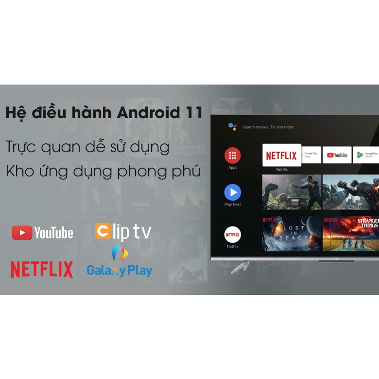 Tivi TCL 4K 50P725 với hệ điều hành Android 11 cải tiến, hỗ trợ các ứng dụng có sẵn: Youtube, Netflix, Clip TV, FPT Play, Nhac.vn, VieOn, Trình duyệt web và hàng loạt các ứng dụng phổ biến khác trong kho ứng dụng: ZingTV, Zing MP3, Nhaccuatui, Viettel TV, VTV Plus, Các ứng dụng, game có sẵn trên Google Play…