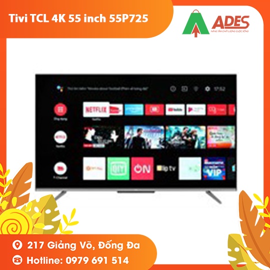 Thiết Bị Điện Gia Dụng > Tivi & Phụ kiện > Tivi || Tivi TCL 4K 55 inch 55P725 Android tràn viền sang trọng tinh tế - Chuẩn hãng BH 2 nămCòn hàng