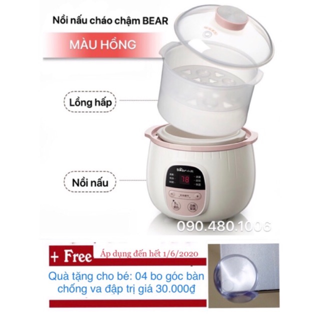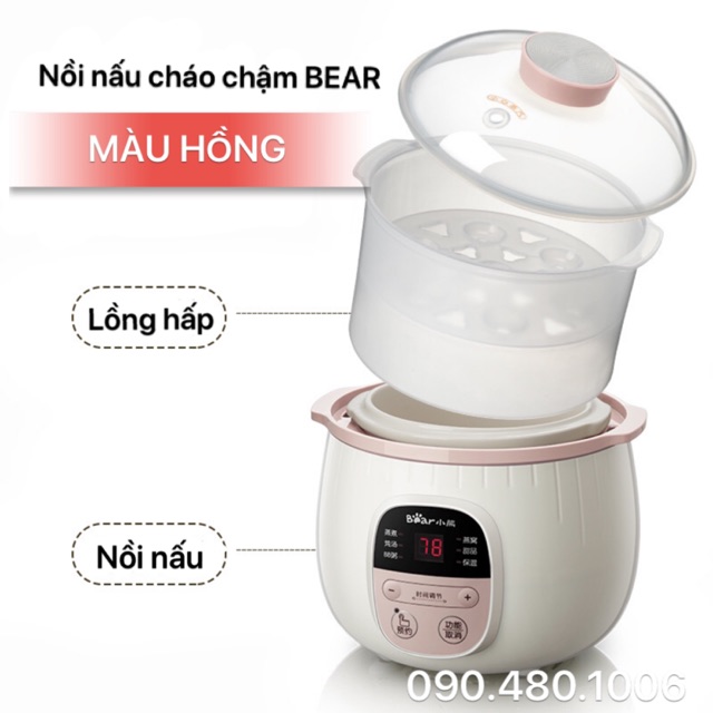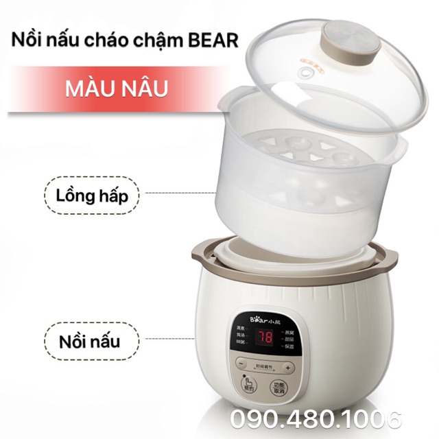 (TLY NGHỈ BÁN) NỒI NẤU CHÁO CHẬM BEAR CÓ HẸN GIỜ 0,8L