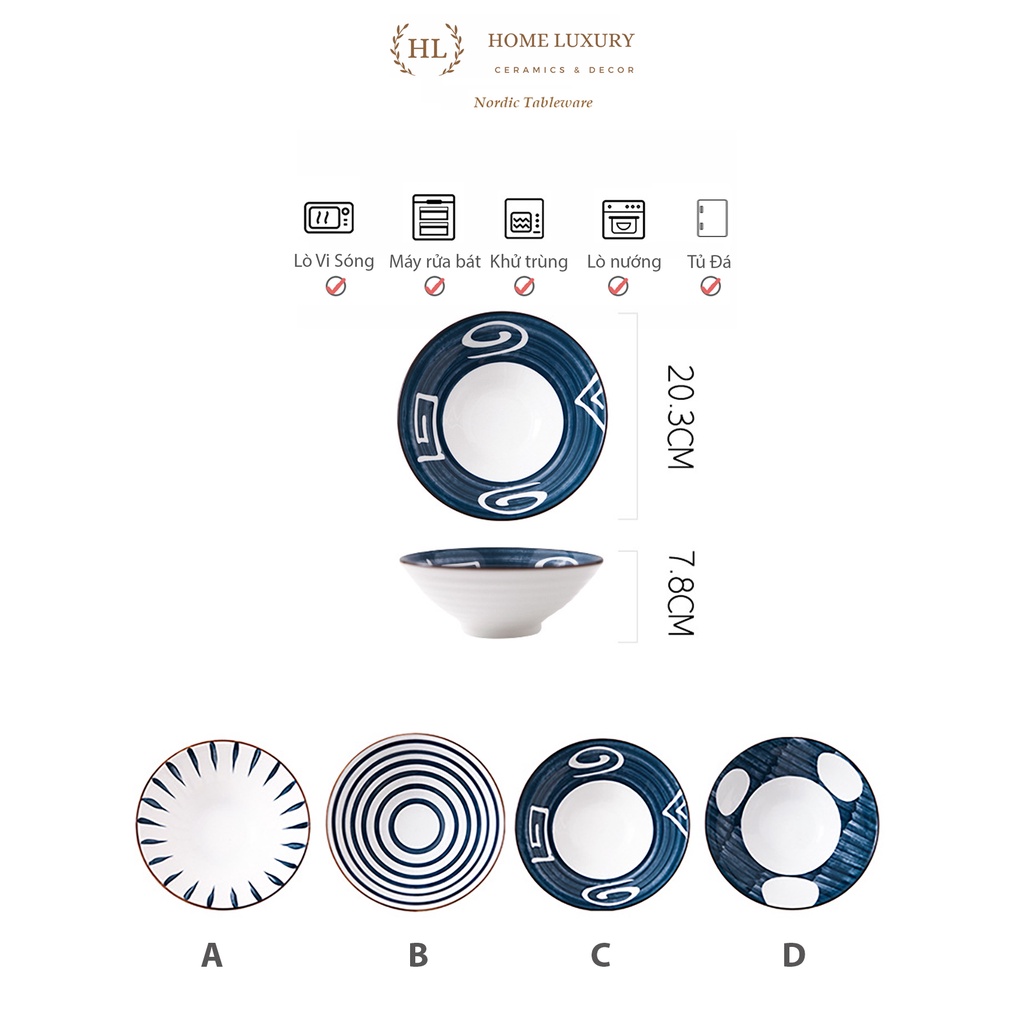 Tô 8 Loe Nhật Bản | Tô sứ phong cách Retro 2022 Họa tiết thiết kế tối giản
