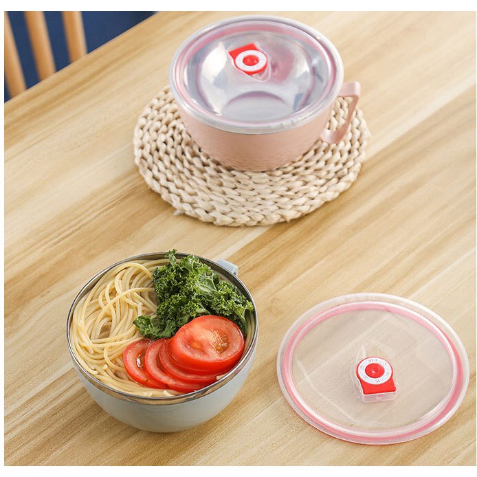 TÔ ĂN MÌ , ĂN CHÁO LÕI INOX CÁCH NHIỆT 2 LỚP CÓ NẮP ĐẬY VÀ TAY CẦM CHỐNG NÓNG
