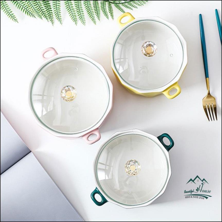 Tô Ăn Mì Bằng Sứ Nắp Thuỷ Tinh Có Thể Dùng Trong Lò Vi Sóng -TM01🍀 THÔNG TIN SẢN PHẨM