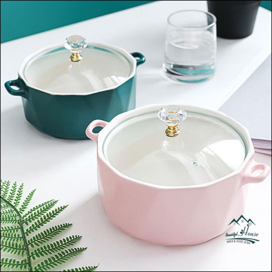 - Chất liệu: Tô làm bằng sứ cao cấp, nắp thủy tinh trong suốt
