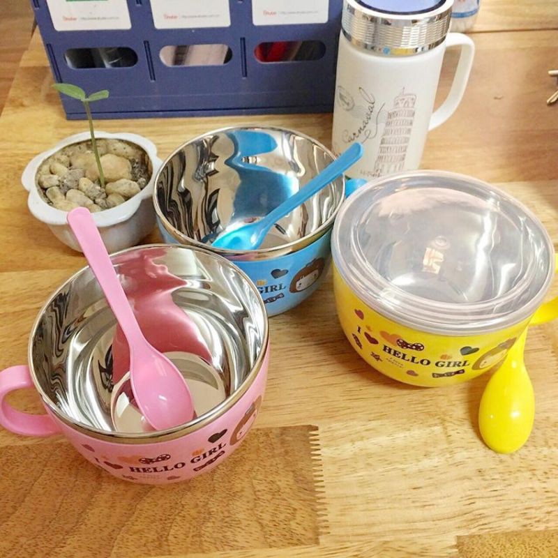 Tô ăn mì inox kèm muỗng có nắp đậy Bát ăn mì inox Tô ăn cơm văn phòng Bộ tô muỗng Tô inox Bát inox có nắp kèm muỗng