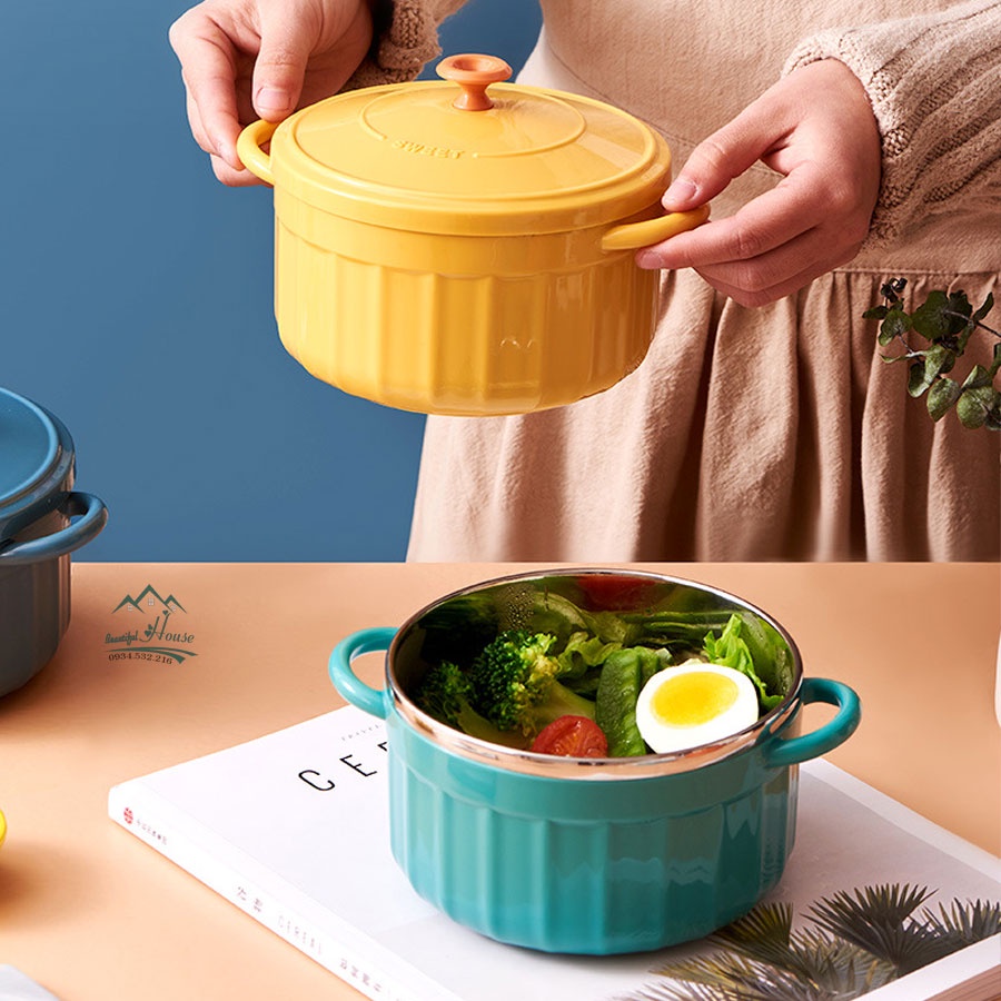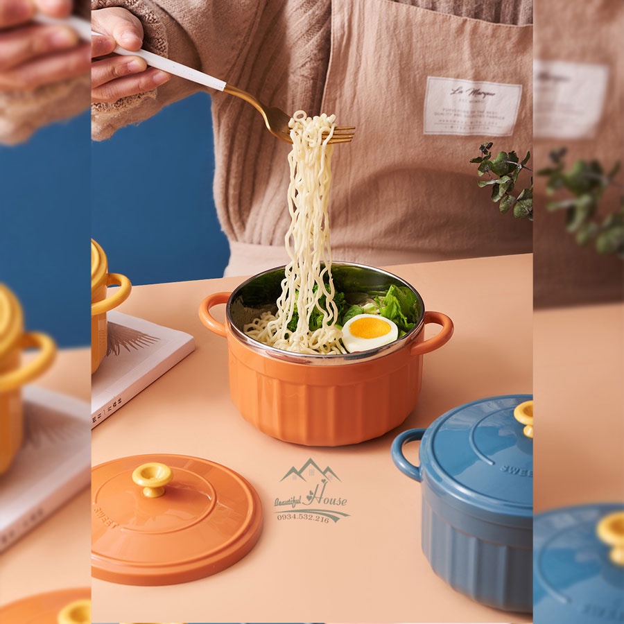 - Bát Nấu Mì Mô Phỏng Nồi Đất 850ml có 3 lớp cách nhiệt, úp mì nhanh chóng, chín đều và giữ nóng thức ăn bên trong hiệu quả.