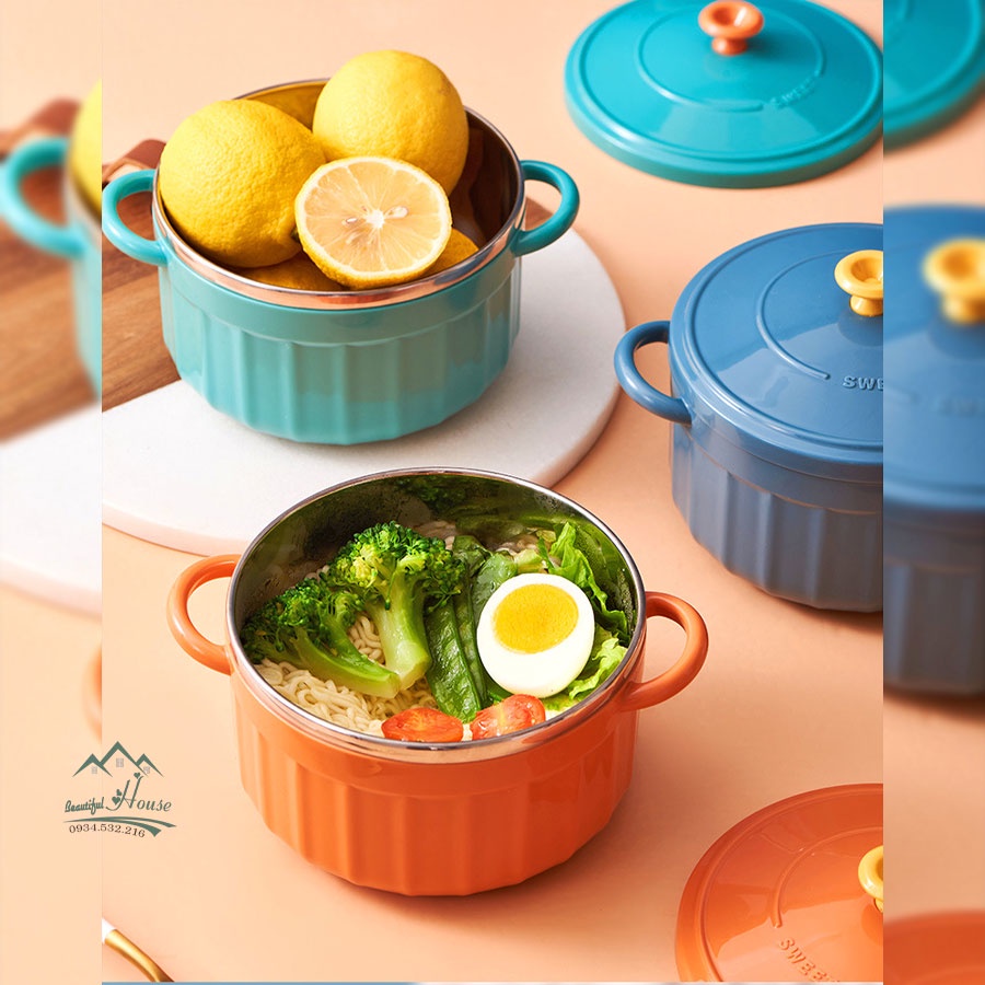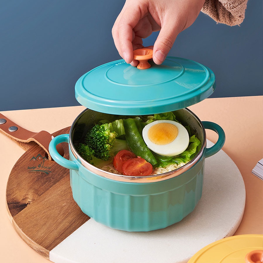 Tô Ăn Mỳ, Đồ Ăn Liền Có Nắp Chất Liệu Inox An Toàn Cho Sức Khỏe✔️4 màu: xanh nhạt - xanh đậm - vàng -cam