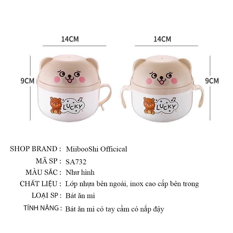 Giới thiệu Tô bát ăn mì tôm có nắp đậy có tay cầm hàn quốc hình gấu cute kèm thìa hai lớp inox chống nóng an toàn MiibooShi SA732
