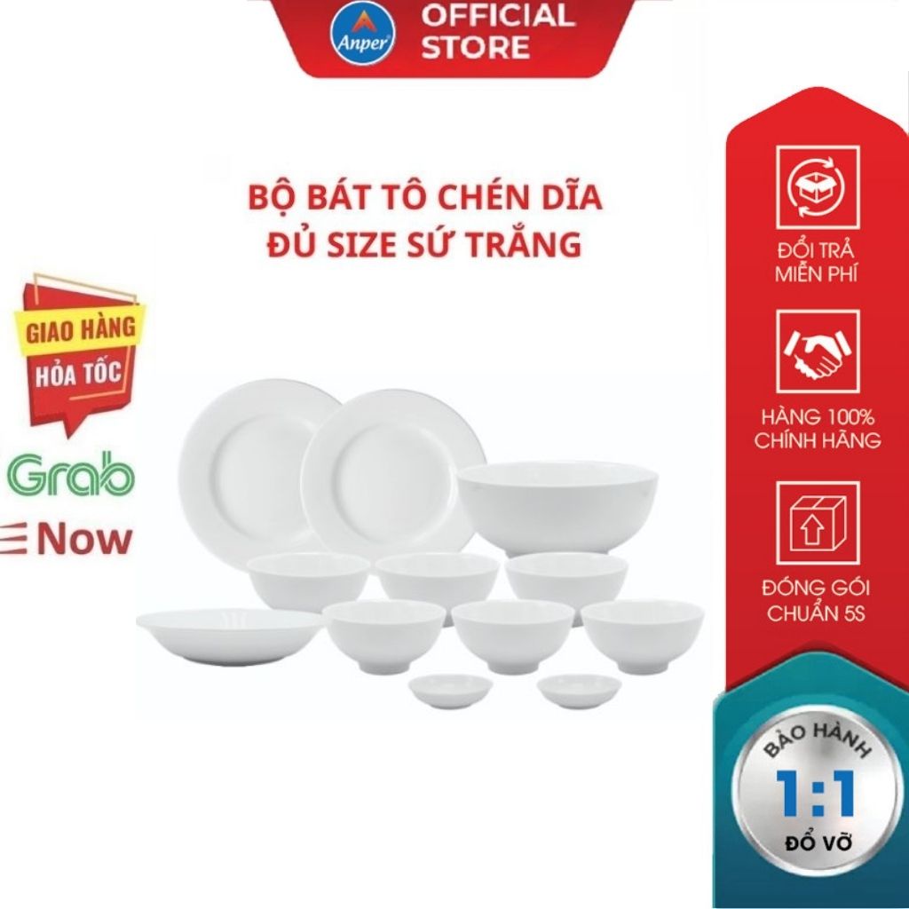 Tô bát đĩa chén cơm sứ trắng dày ANPER đủ size màu sắc trang nhã tinh tế tô điểm thêm cho căn bếp sự sang trọng