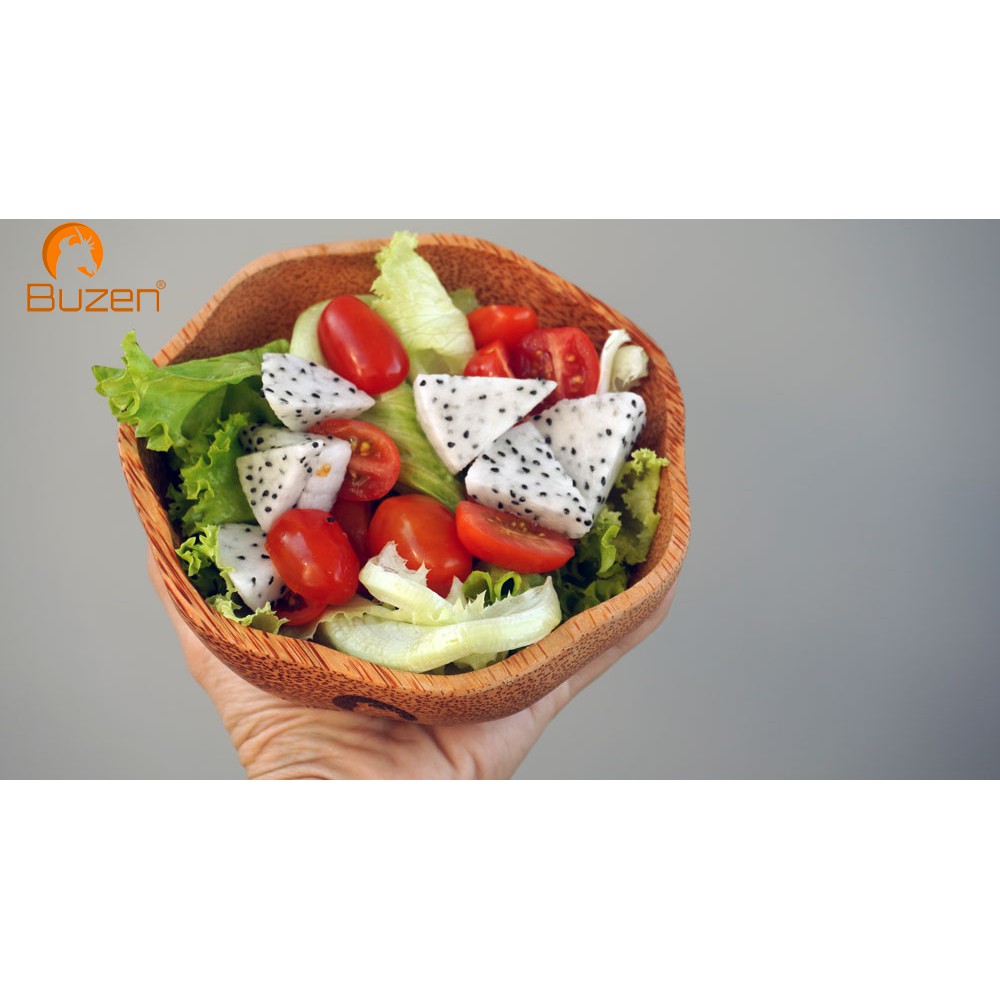 Tô Bát Gỗ Dừa Hình Hoa Mai Cao Cấp BUZEN - Tô Gỗ Trộn Salad hoặc các món ăn vặtKích thước: Đường kính 16 cm, độ sâu 6 cm