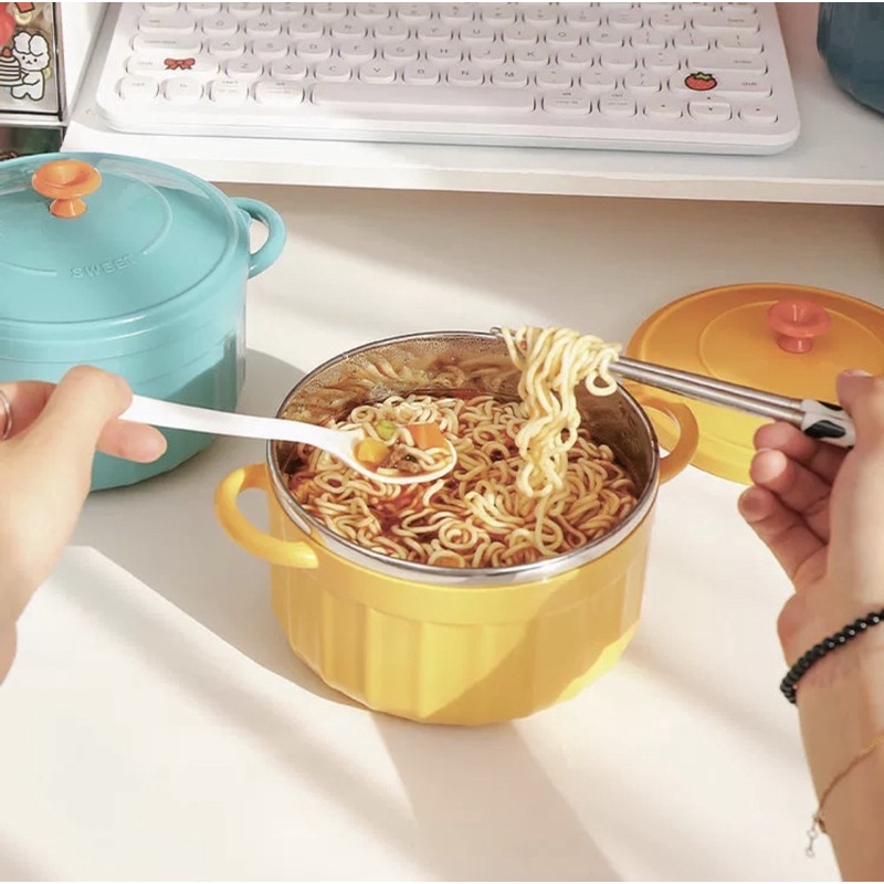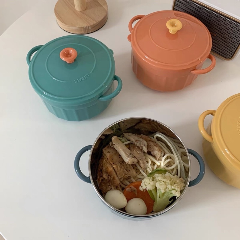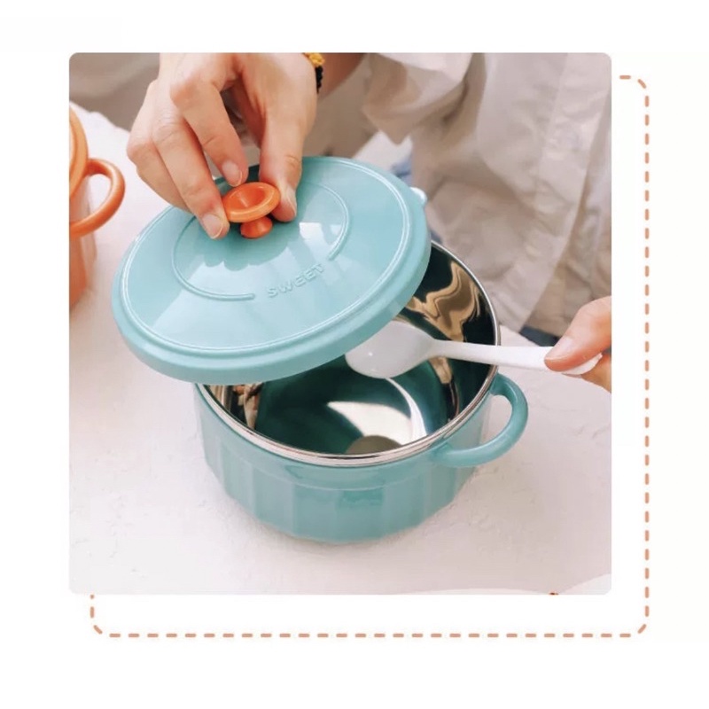 💜Tô/ bát inox có quai cầm có nắp đậy kèm theo muỗng nhựa rất tiện lợi- Sản phẩm bên ngoài là chất liệu nhựa, bên trong là inox không gỉ sét