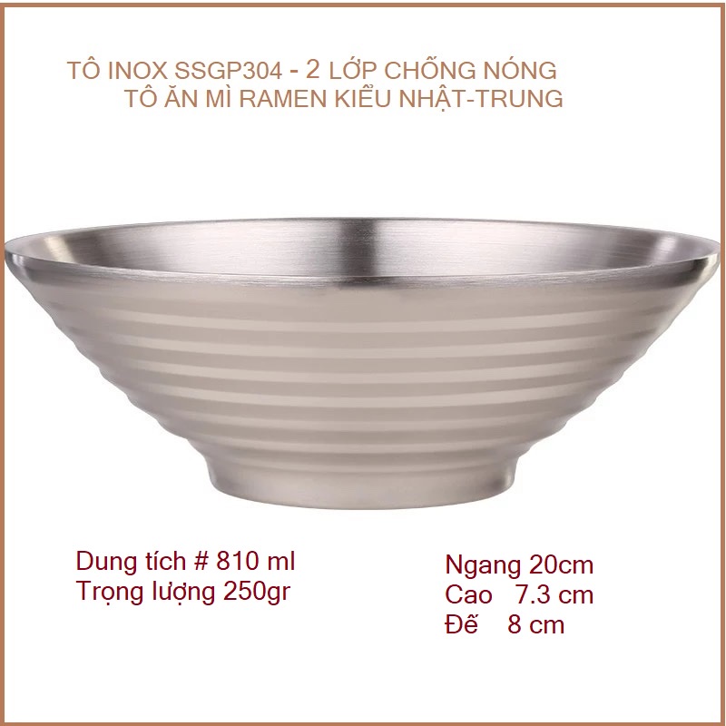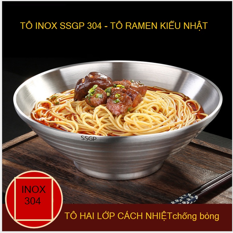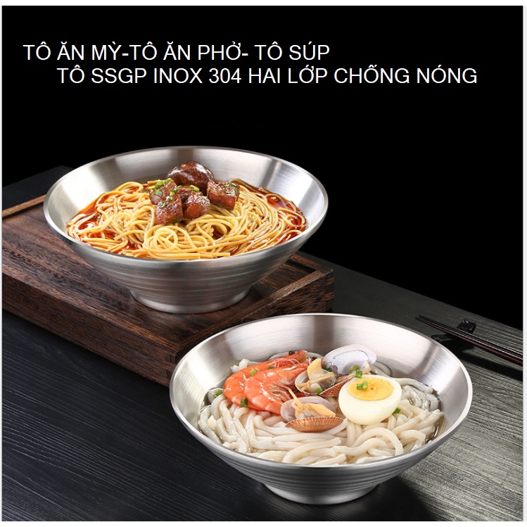 TÔ ,BÁT-INOX SSGP 304 HAI LỚP CHỐNG NÓNG-TÔ ,BÁT ĂN MÌ RAMEN KIẾU NHẬT TRUNG-hai cỡ 20 và 18cm