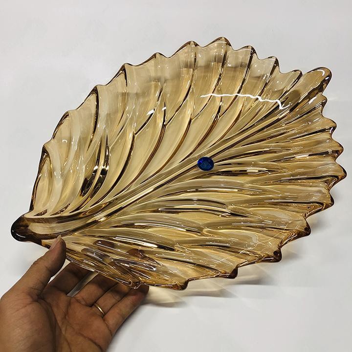 Tô, Bát Thủy Tinh Hình Lá Màu Vàng Cao Cấp