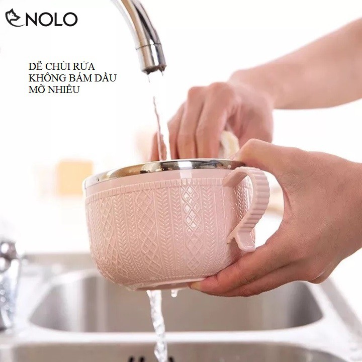 Phần lòng bát được tráng lớp inox 304 chống hoen gỉ, không bám dầu mỡ khó rửa. Kế lớp inox đó thì đến 1 lớp không khí rỗng để hạn chế nhiệt tỏa ra vỏ ngoài bát giúp cách nhiệt tối đa, dù thức ăn có nóng đến cỡ nào thì vỏ ngoài bát cũng không bị ảnh hưởng.