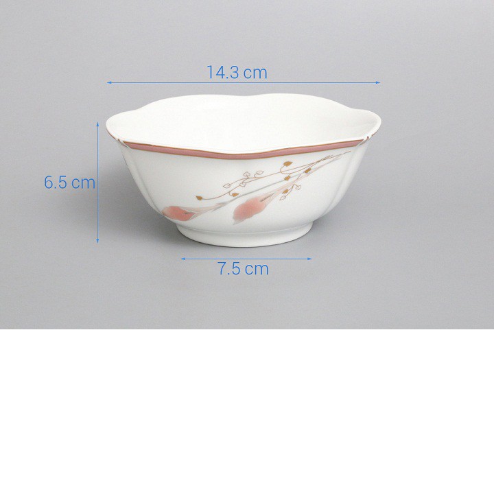 Đường kính 14.3 cm, lòng tô sâu tiện đựng canh cho 1 người dùng.