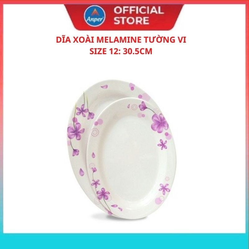 Bộ tô chén bát dĩa nhựa Melamine Anper chất liệu nhựa cao cấp kiểu dáng hoa Tường Vi sang trọng an toàn sức khỏe