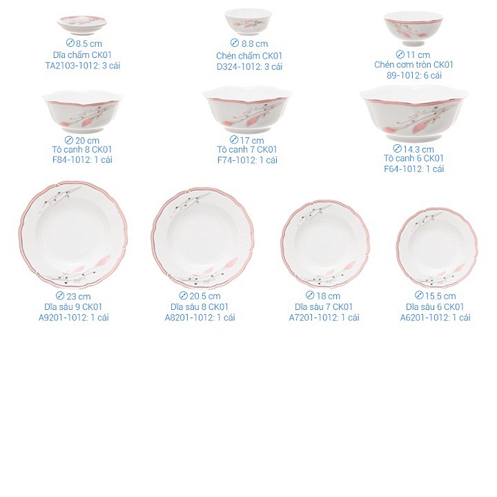 Giới thiệu Bộ tô chén đĩa gốm sứ Chuan Kao 1012 cao cấp