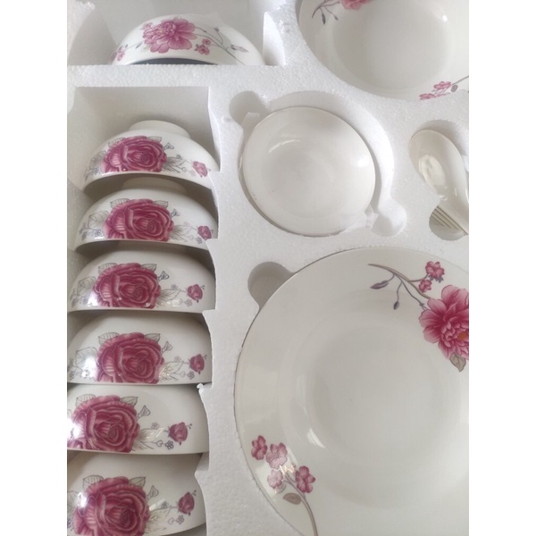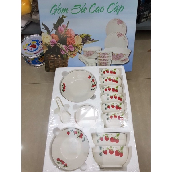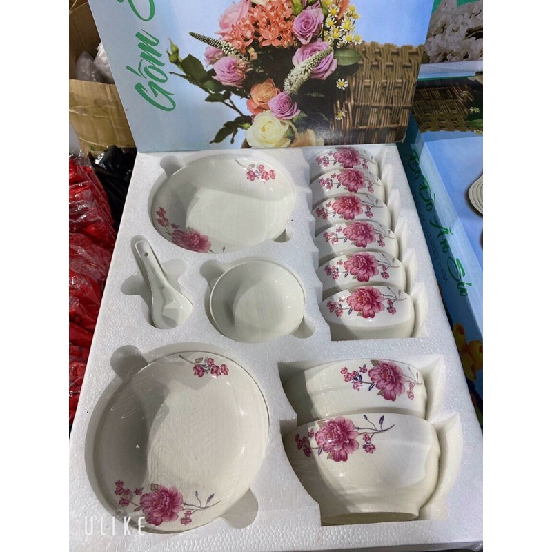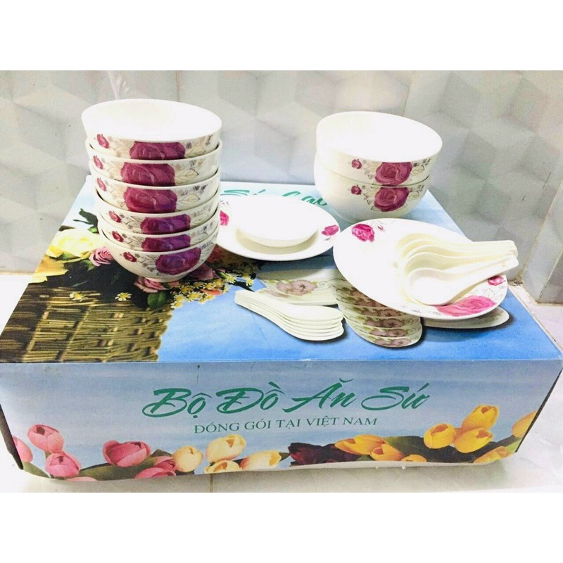 BỘ TÔ CHÉN ĐĨA SỨ 17 MÓN ( 6 chén, 2 tô, 2 dĩa, 1 chén chấm, 6 muỗng).Hàng đẹp loại 1 ạ
