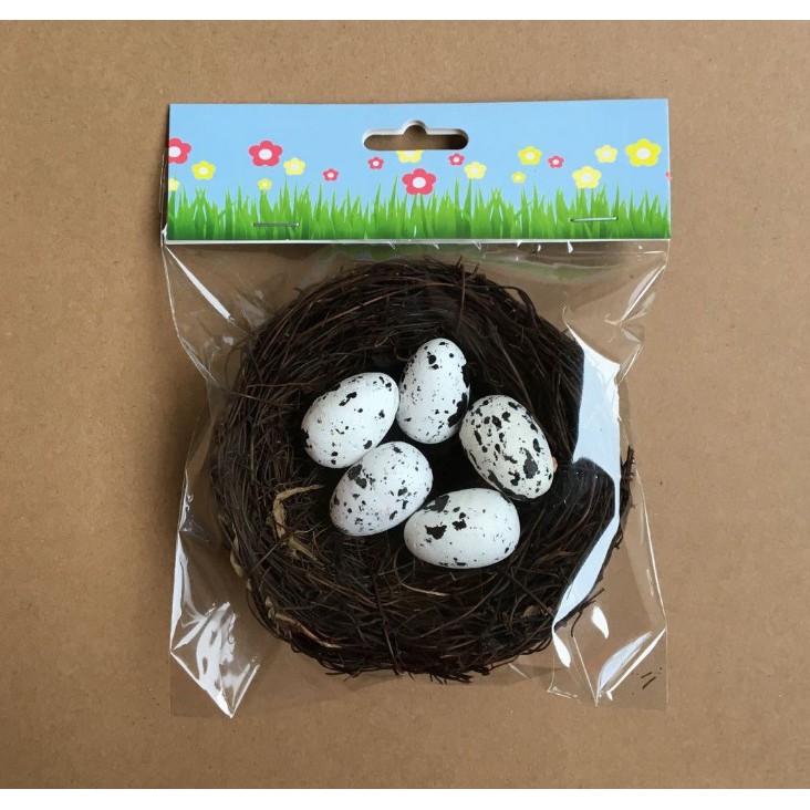 Giới thiệu Tổ chim giả trang trí (tổ chim đường kính 10cm và 5 quả trứng)