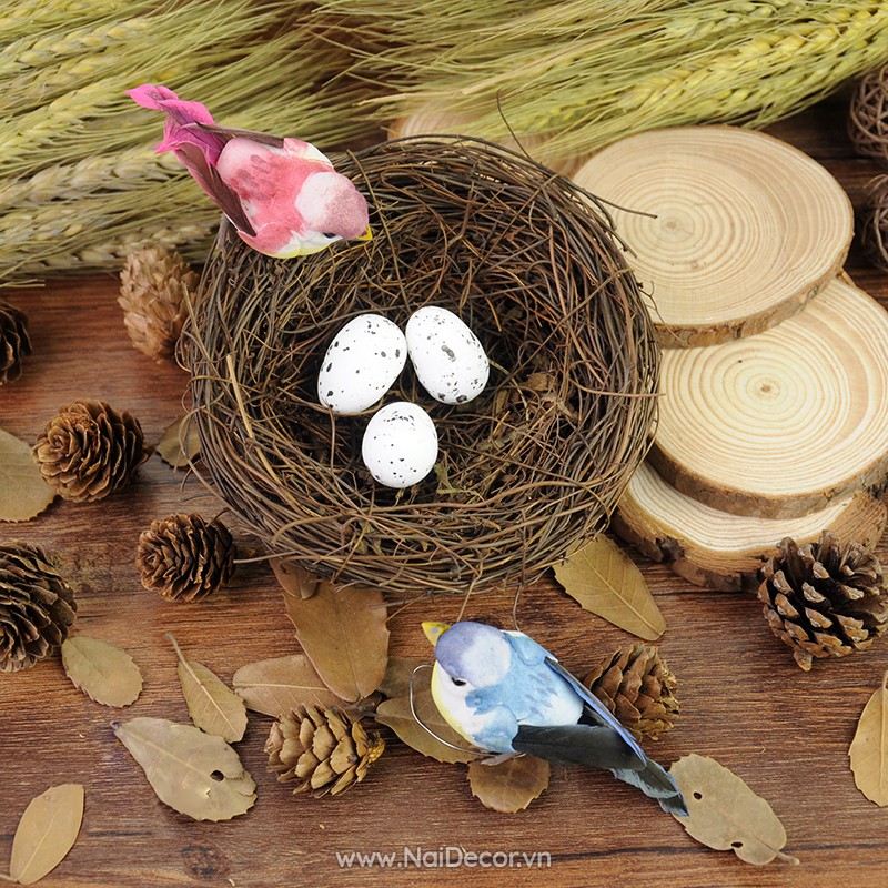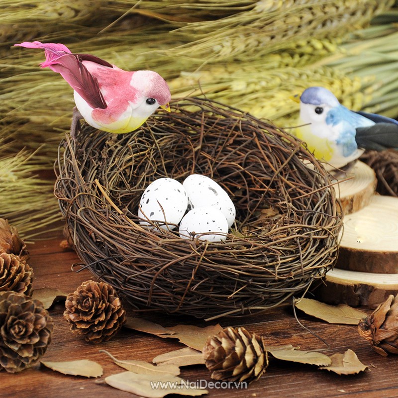 - Lưu ý: Sản phẩm chỉ có tổ chim, không kèm theo các phụ kiện linh tinh như chim, trứng chim, hoa lá, hạt... Nên các bạn ra chợ mua trứng cút về trưng cho đẹp nhé.