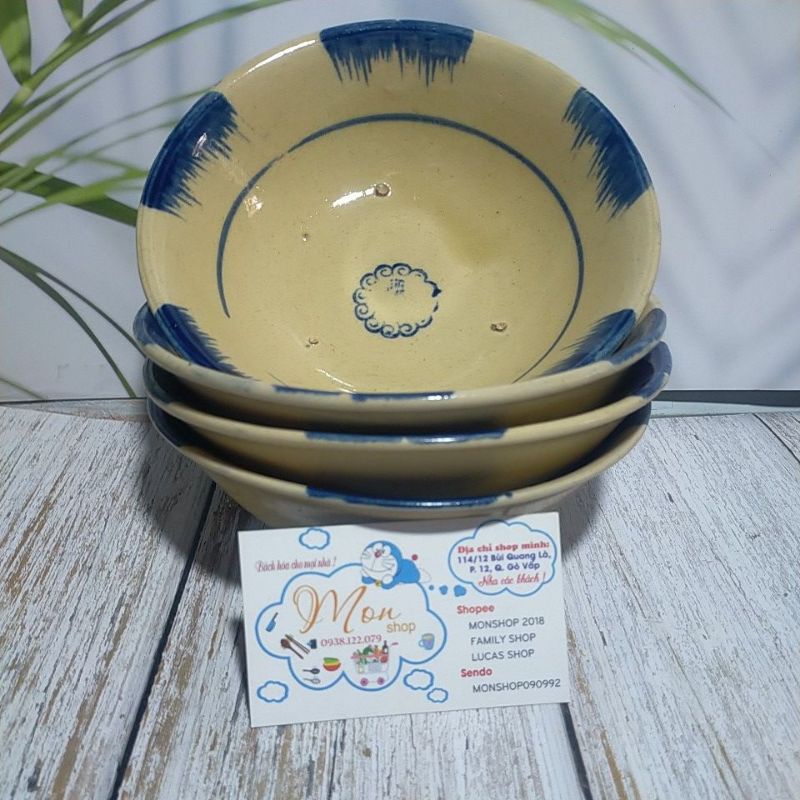 Tô đá xưa mẫu phết xanh nhỏKích thước 16.5*5,5cm