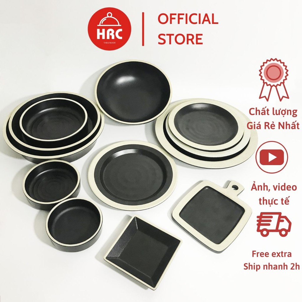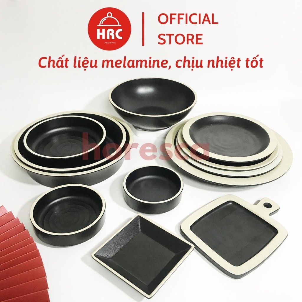 Nhà cửa & Đời sống > Bộ đồ bàn ăn > Tô || Bộ Tô Đĩa Tròn Bộ Đồ Bàn Ăn Nhựa Phíp Melamine Đen Nhám Mờ Viền Trắng Giả Sứ (Cao Cấp)Còn hàng