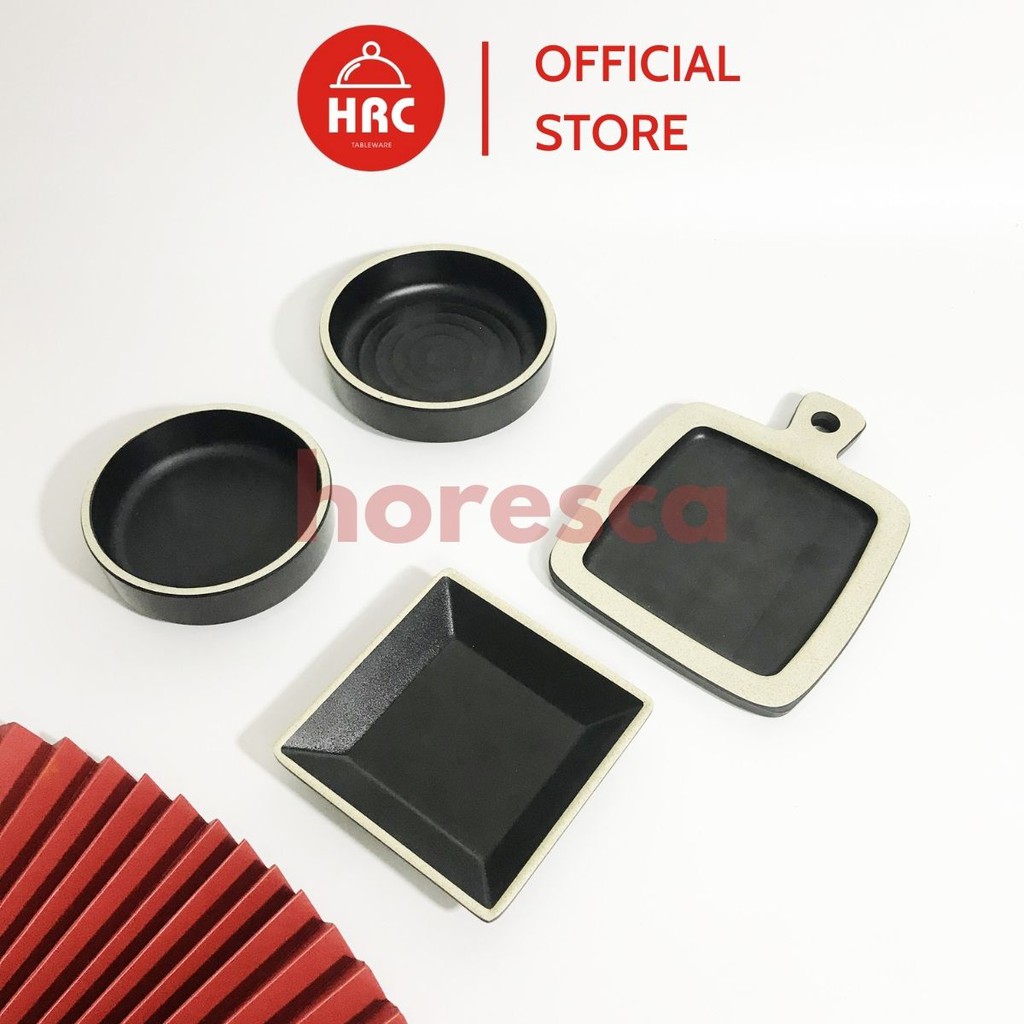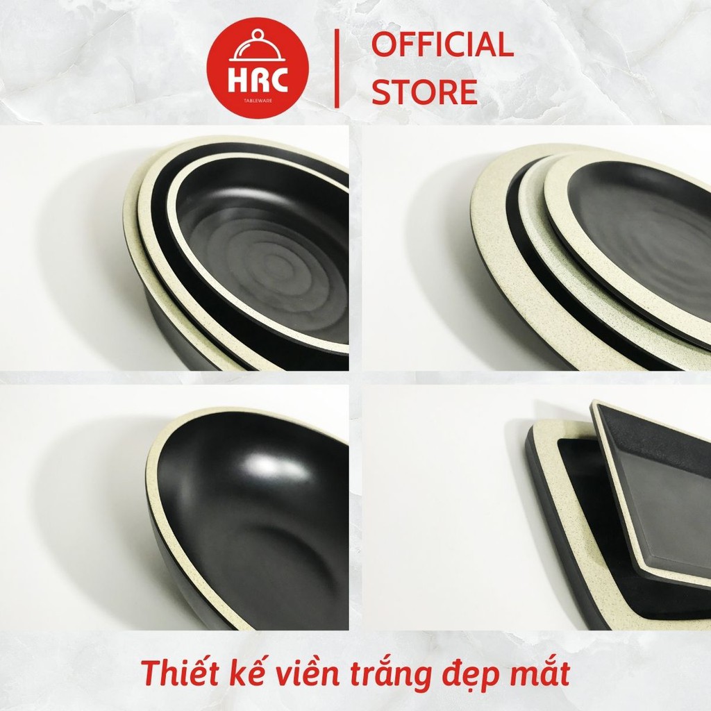 Giới thiệu Bộ Tô Đĩa Tròn Bộ Đồ Bàn Ăn Nhựa Phíp Melamine Đen Nhám Mờ Viền Trắng Giả Sứ (Cao Cấp)