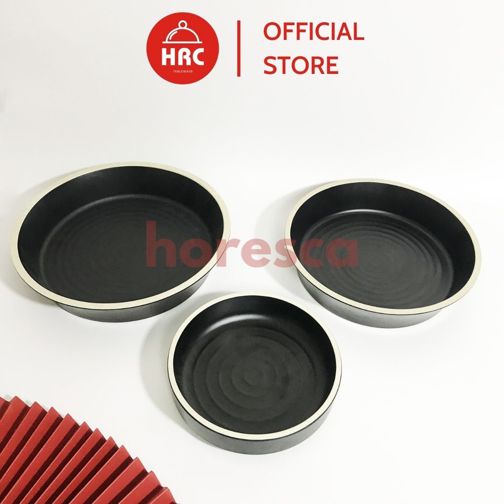 ✅ Bộ Tô Đĩa Tròn Bộ Đồ Bàn Ăn Nhựa Phíp Melamine Đen Nhám Mờ Viền Trắng Giả Sứ thiết kế cổ điển, trang nhã