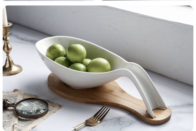 Giới thiệu Tô đựng salat, hoa quả kèm đế gỗ hình chiếc muỗng , sứ cao cấp không chì