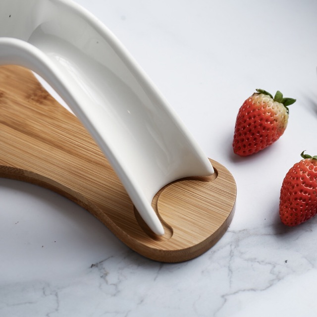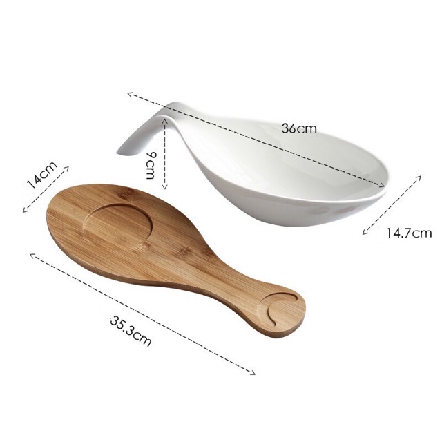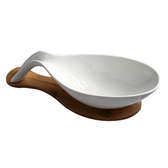 Tô đựng salat, hoa quả kèm đế gỗ hình chiếc muỗng , sứ cao cấp không chì