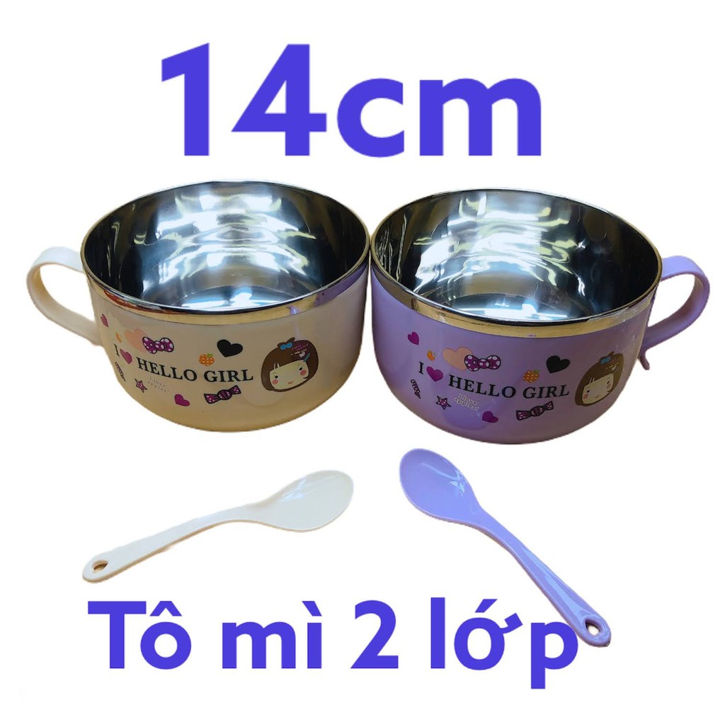 tô giữ nhiệt 2 lớp có quai cầm và nắp đậy 14 cm tiện dụngshop bán giao màu ngẫu nhiên