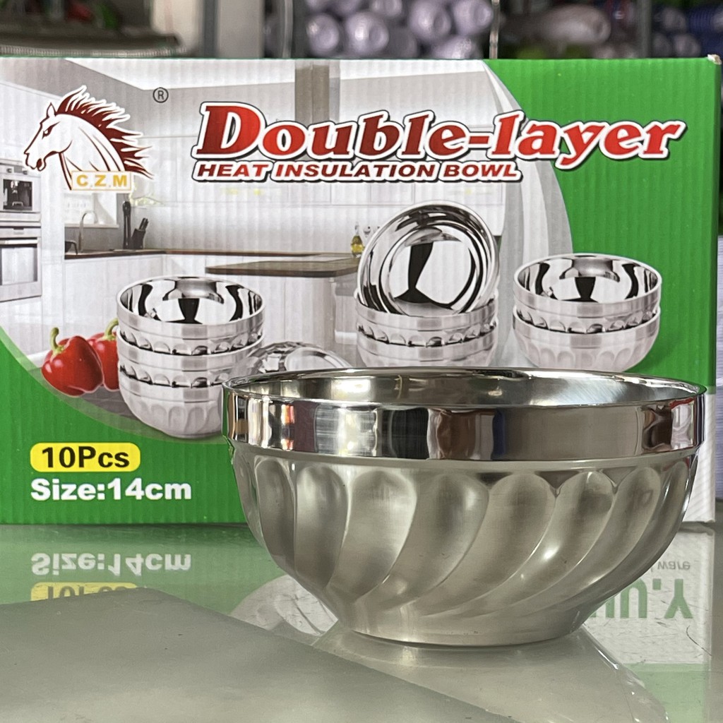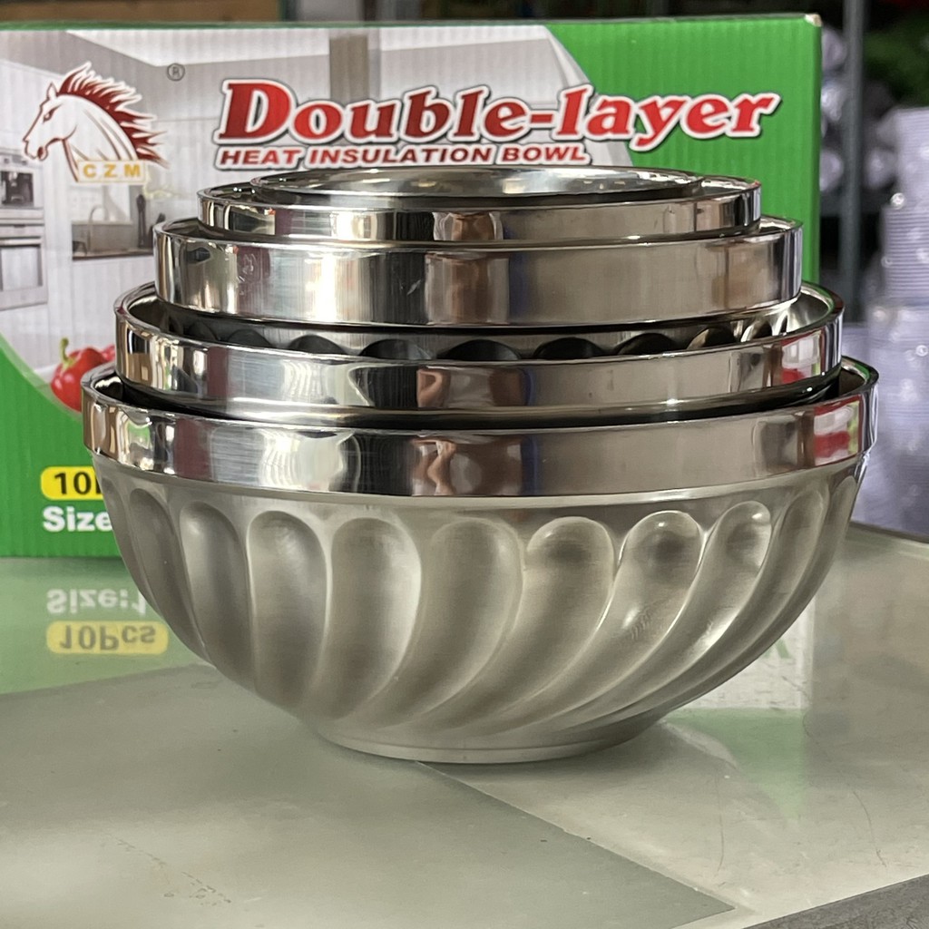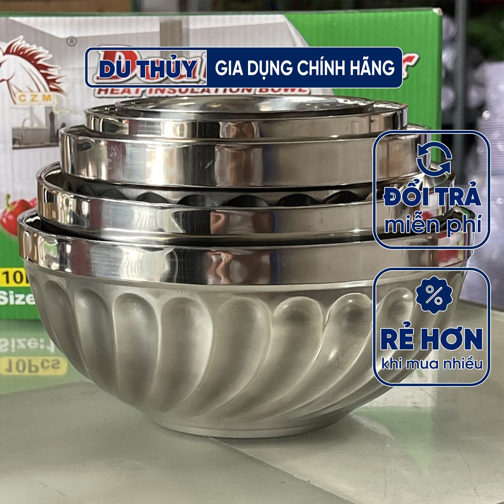 Tô inox 2 lớp cách nhiệt, 4 size 14-20, chất liệu inox chóng gỉ, chịu nhiệt cao, cách nhiệt an toàn của gia dụng Du Thủy