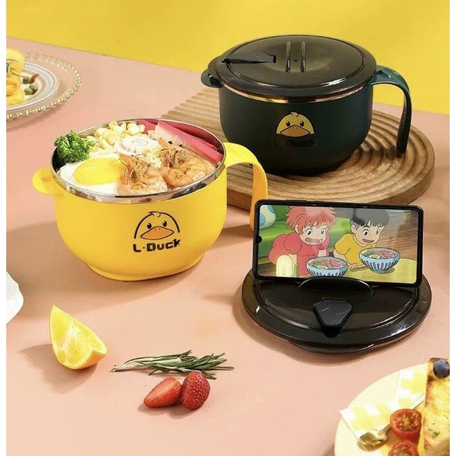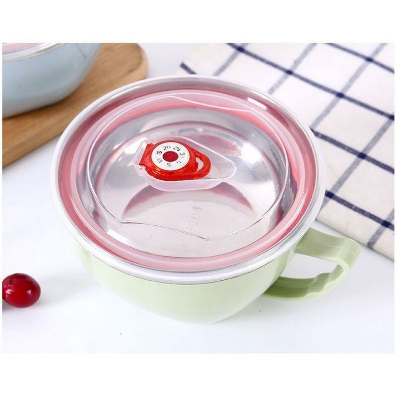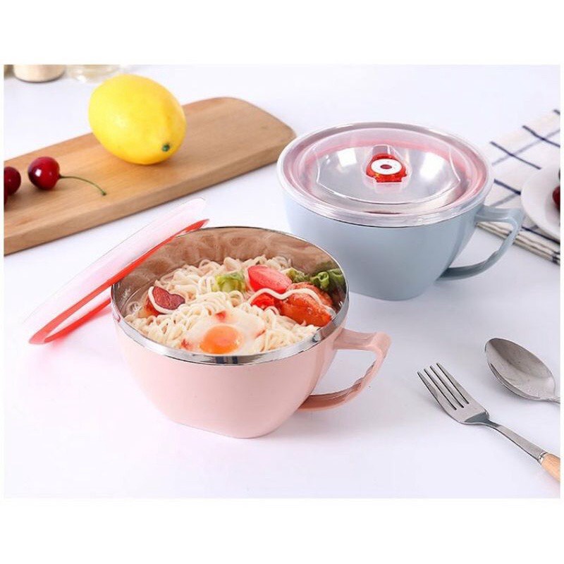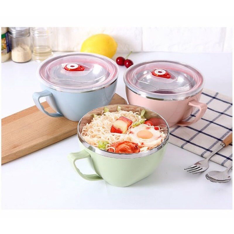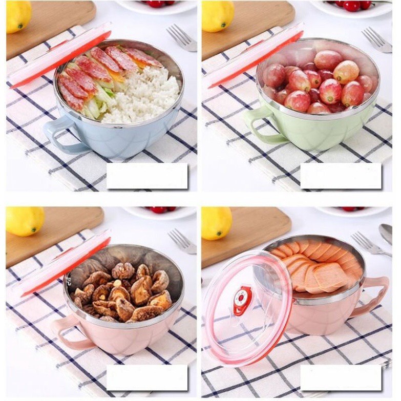 Tô inox 2 lớp cách nhiệt, lõi chống nóng - có nắp đậy và tay cầm ~15cm- Tô thích hợp sử dụng ăn mì, đựng cơm văn phòng, đi học, du lịch ...