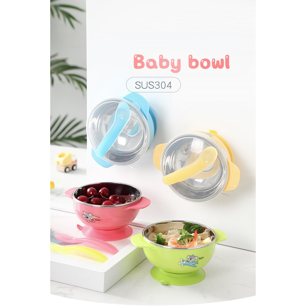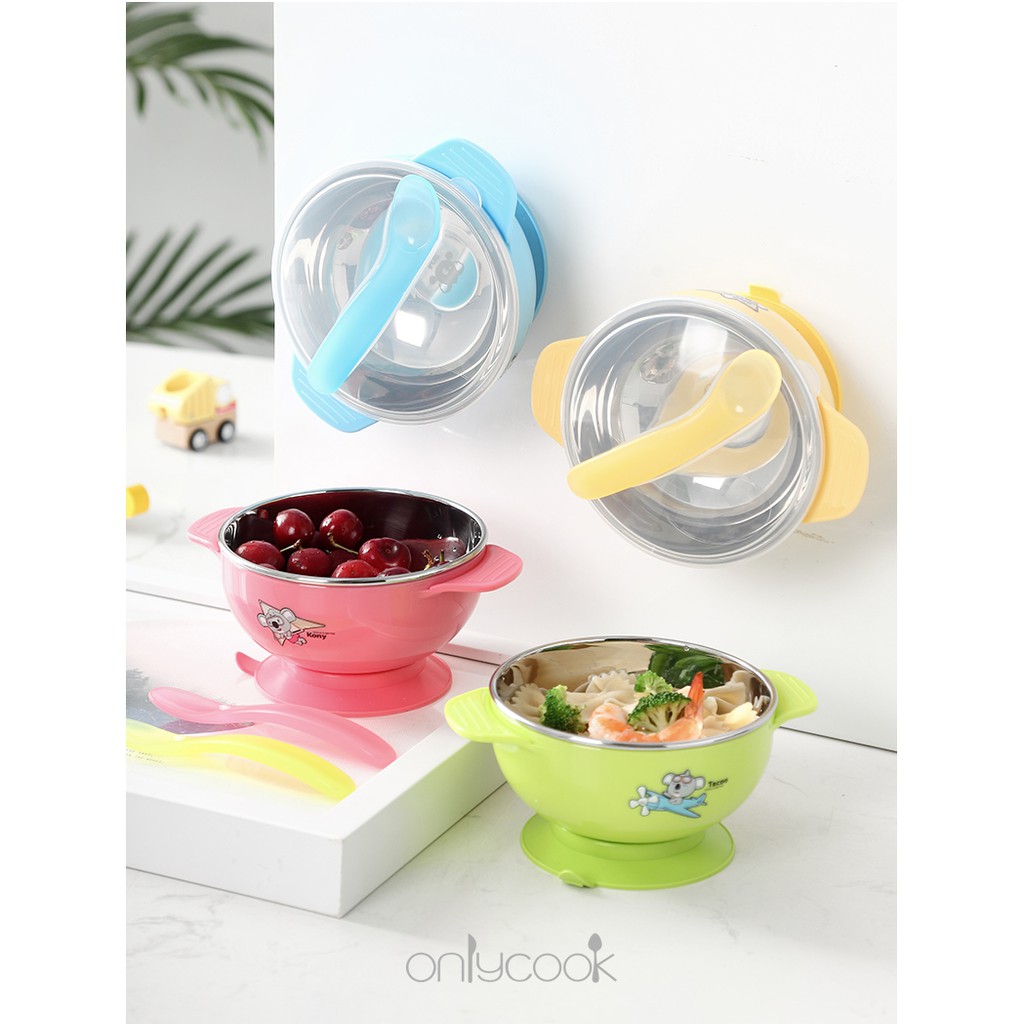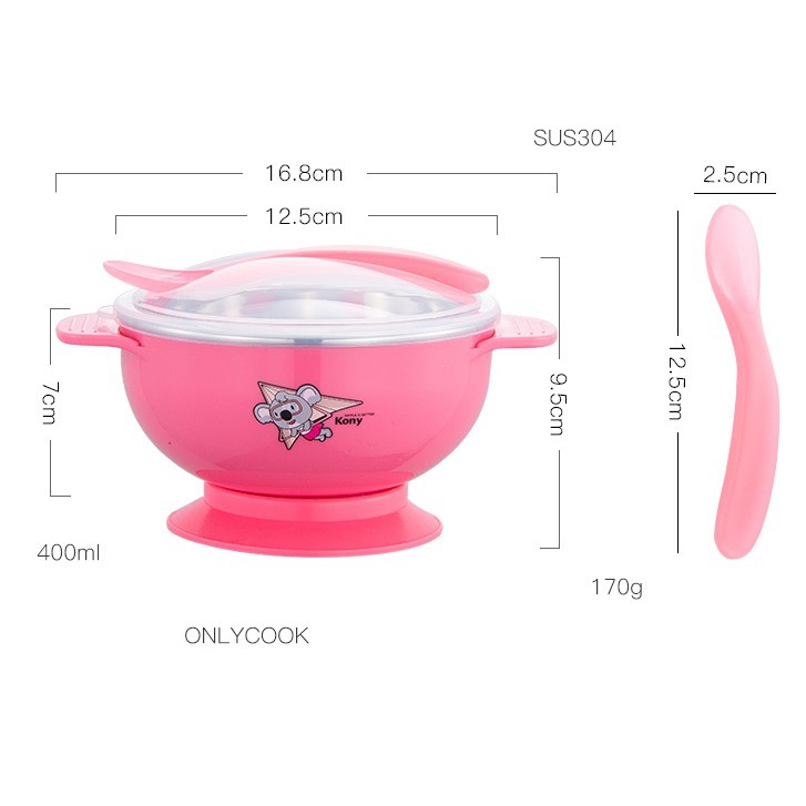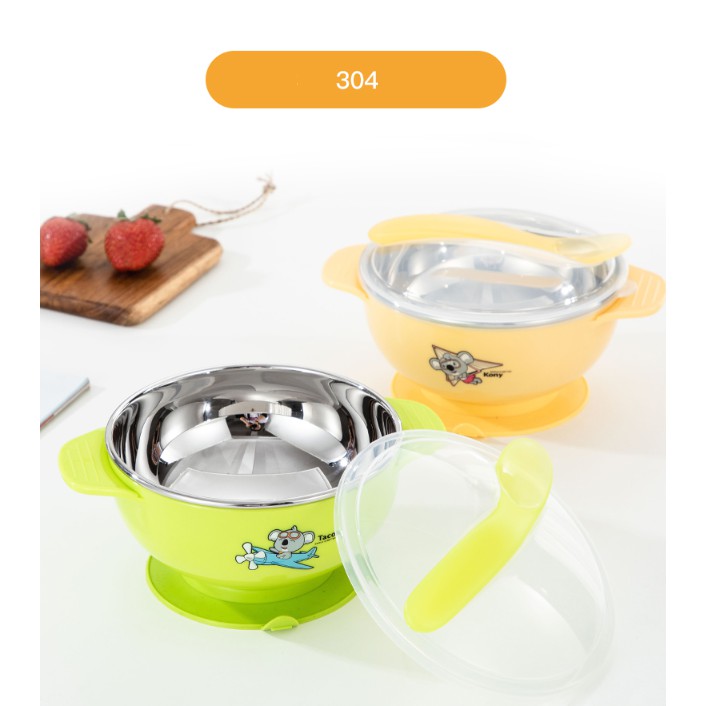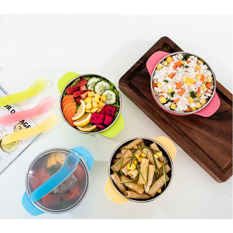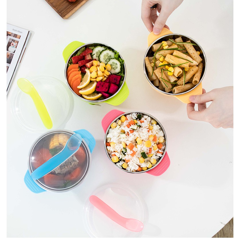 Tô Inox 304 có nắp trẻ em ăn dặm kèm muỗng nhựa an toàn cho bé nhiều màu sắc - 16.8x9.5cm 170g 400ml