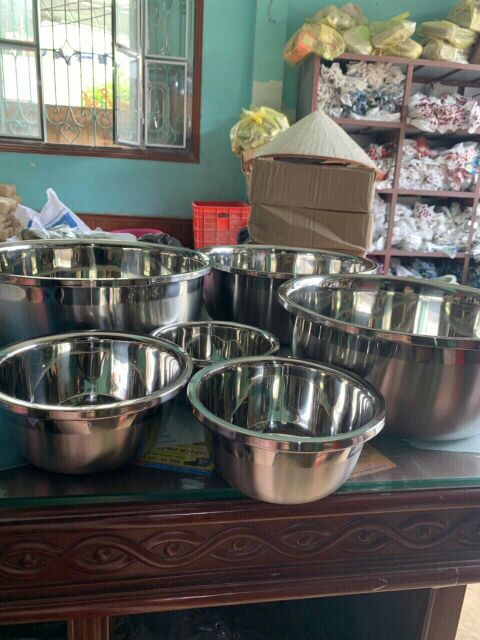 Tô inox đựng thức ăn, trộn đồ ăn , trộn nem rán, trộn hoa quả.....hàng cực dày dặn, cực đẹp và xịn, sạch sẽ cho gian bếp của các chế nàyCó các cỡ từ 20cm, 22cm, 24cm, 26cm, 28cm, 30cm, 32cm nhé