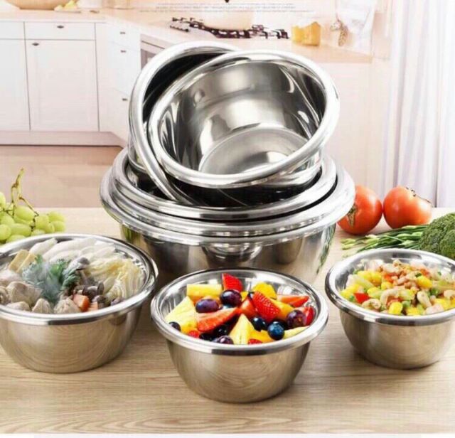 Tô inox đựng thức ăn, trộn đồ ăn , trộn nem rán, trộn hoa quả.....hàng cực dày dặn, cực đẹp và xịn, sạch sẽ cho gian bếp của các chế nàyCó các cỡ từ 20cm, 22cm, 24cm, 26cm, 28cm, 30cm, 32cm nhé