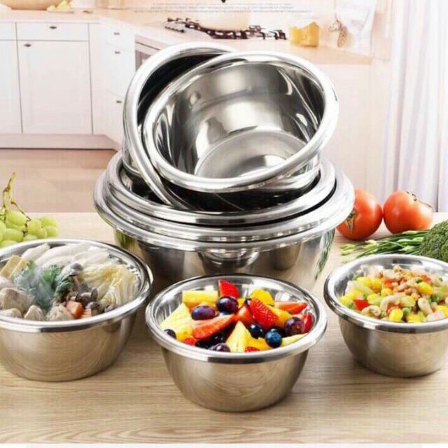 Tô inox đựng thức ăn, trộn đồ ăn , trộn nem rán, trộn hoa quả.....hàng cực dày dặn, cực đẹp và xịn, sạch sẽ cho gian bếp của các chế nàyCó các cỡ từ 20cm, 22cm, 24cm, 26cm, 28cm, 30cm, 32cm nhé