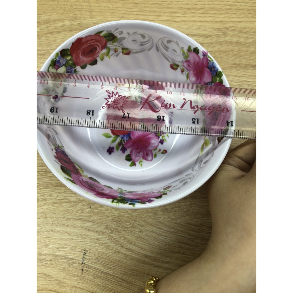 tô melamine tròn 16 cm dạng xoăn hoa văn bông nền màu trắng ( 1 cái )xuất xứ china - trung quốc