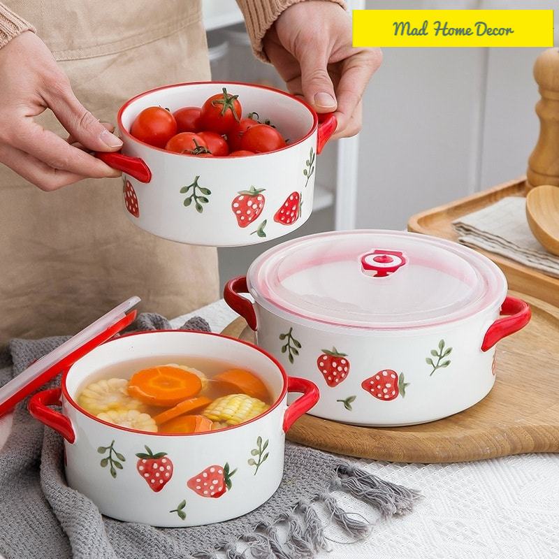 Nhà cửa & Đời sống > Bộ đồ bàn ăn > Tô || Tô mì bằng sứ kèm nắp - Họa tiết dâu tây, chất sứ cao cấp, an toàn khi sử dụngCòn hàng