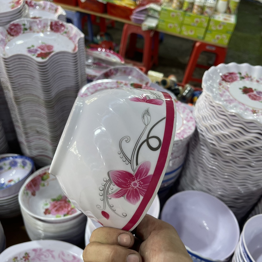 Tô Nhựa Đựng Thức Ăn Họa Tiết Ngẫu Nhiên Cổ Điển