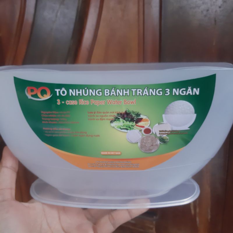 Giới thiệu Tô nhúng bánh tráng 3 ngăn kích thước:24x7x12mm