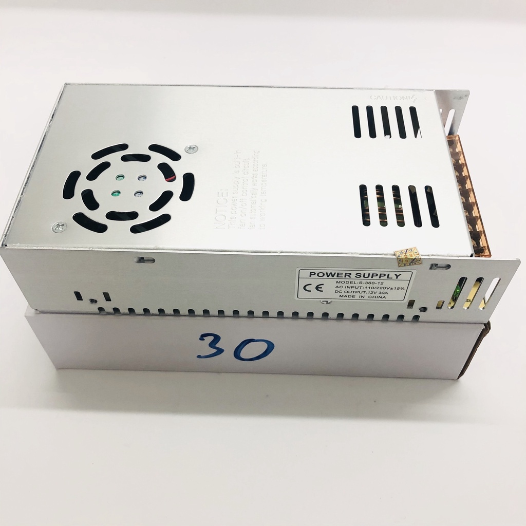 Nguồn tổ ong 12v 30A xịn, có quạt, bảo hành 12 tháng, mới 100%