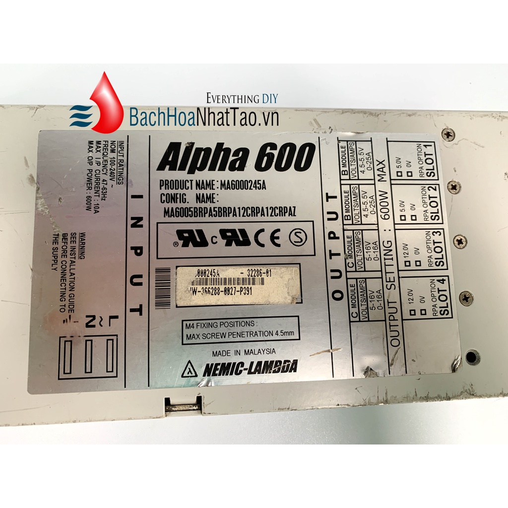 Nguồn tổ ong lamba 2 cổng ra 12v-16a, 5v 25a 600w quạt hàng thanh lý cũMode : Alpha 600 MA600245A