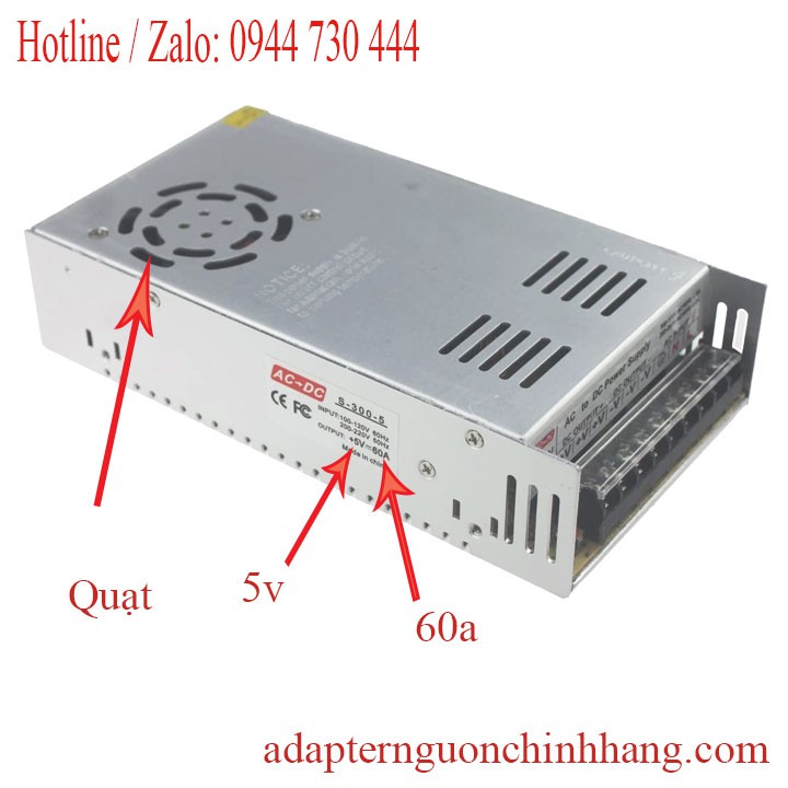 Thông số kỹ thuật Nguồn tổ ong 5v 60a có quạtTên sản phẩm:Nguồn tổ ong 5v 60a có quạt