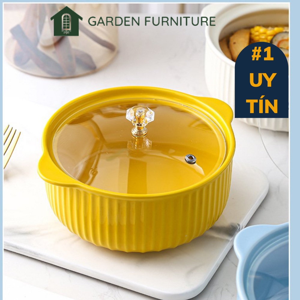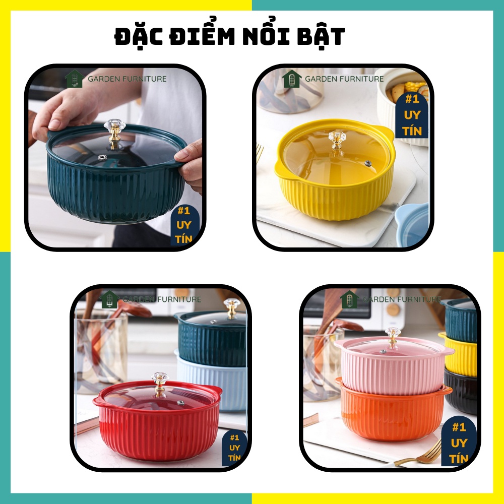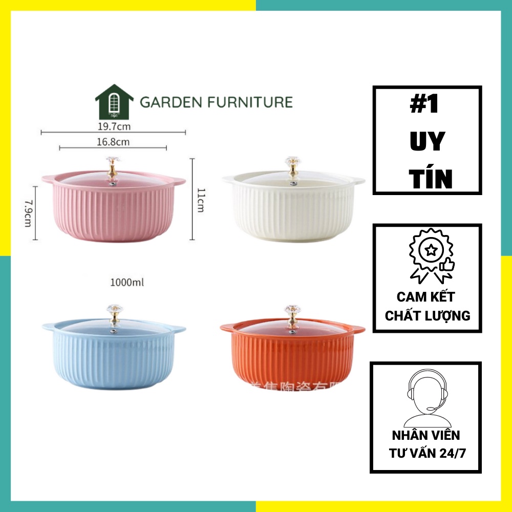 Tô sứ ăn mì size lớn 1000ML, bát nồi gốm sứ có nắp, nồi ăn cháo, phở có nắp và tay cầm tiện lợi, món quà tặng xinh xắn