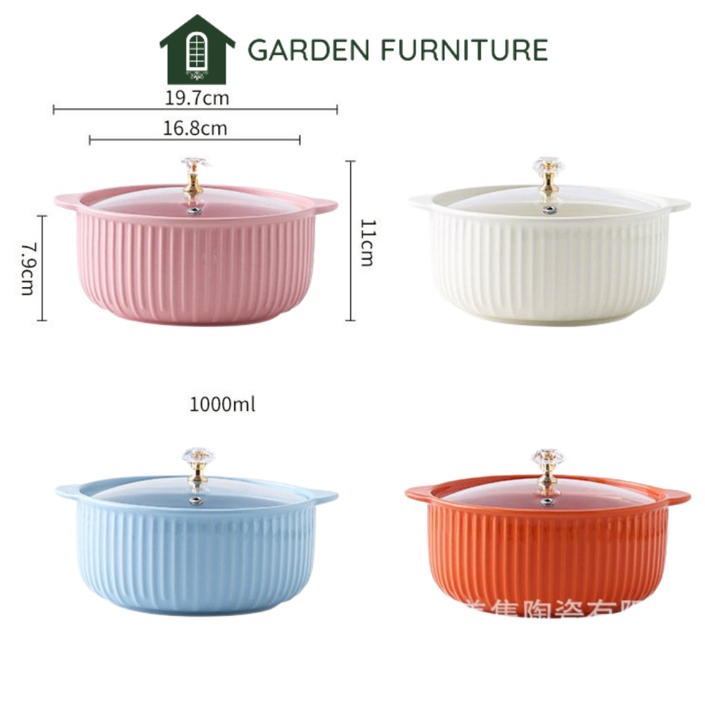 Giới thiệu Tô sứ ăn mì size lớn 1000ML, bát nồi gốm sứ có nắp, nồi ăn cháo, phở có nắp và tay cầm tiện lợi, món quà tặng xinh xắn